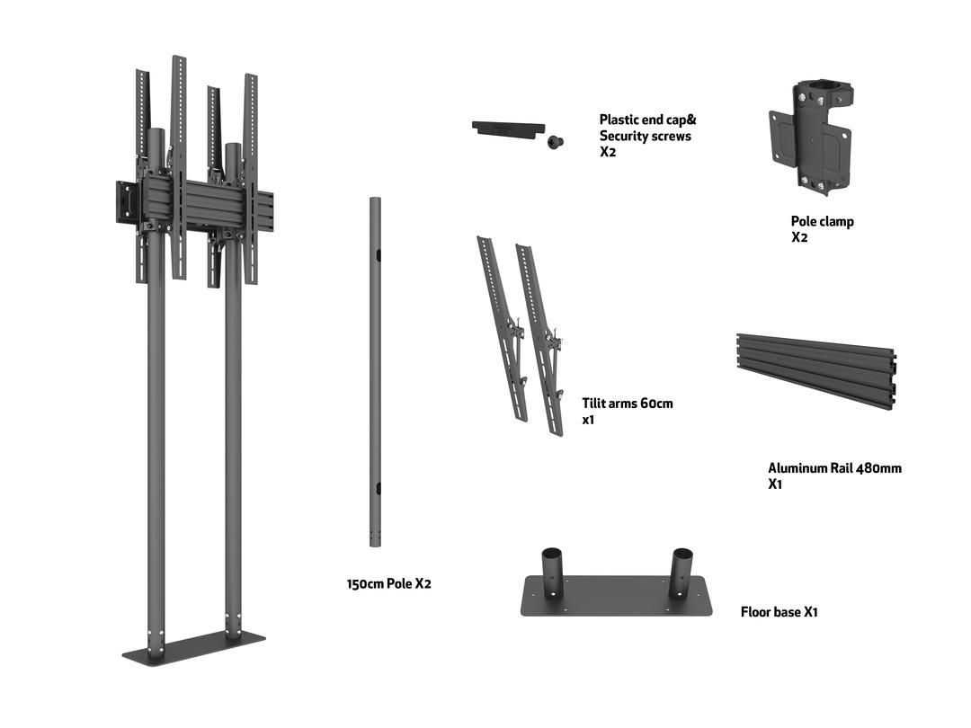Bodenständer B2B, 2x65"-90", Stahl/Aluminium