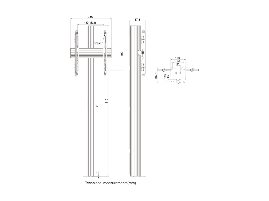 Höhe 1800mm, Microjustierung +/- 10mm, neig-