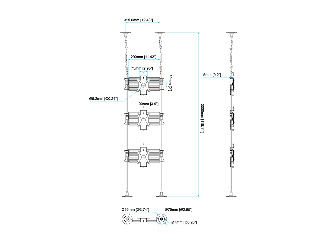 Decken/Boden Trio, 3x27" - 32", VESA 75x75