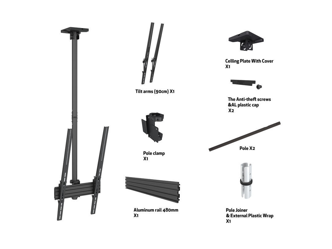 Deckenhalter 1x, 40"-75", VESA 100x100-400x