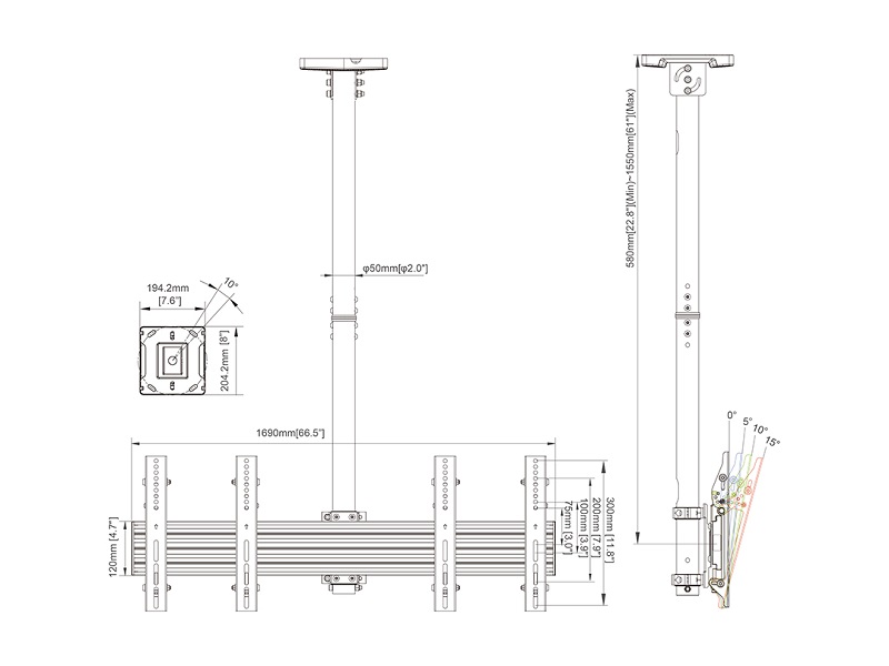 ausziehbar 580mm-1550mm, Neigbar 15°,