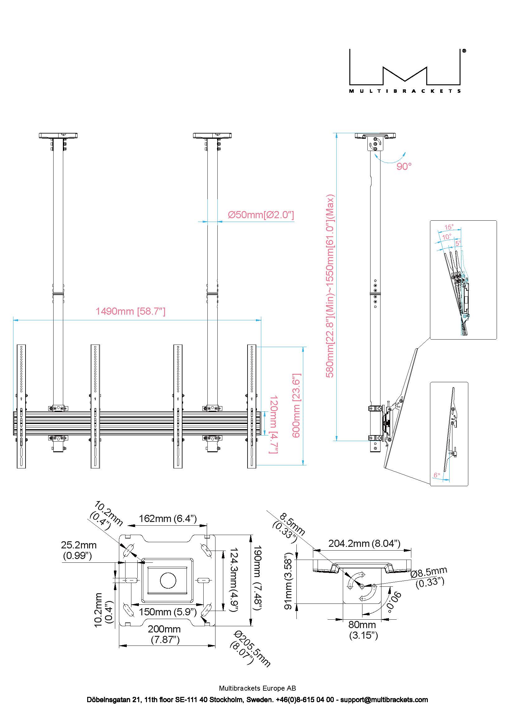 Deckenhalter 2x, 32"-50", schwarz, VESA 100x