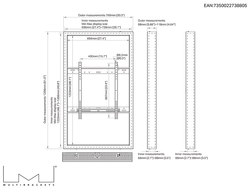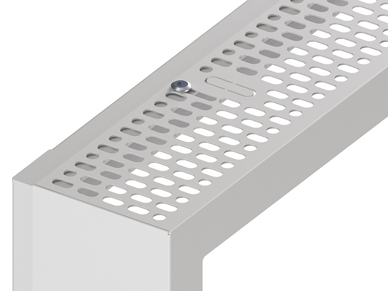 durch Öffnungen im Gehäuse, abschliessbar mit Sicherheitsschrauben, Masse: 136x86x13cm,