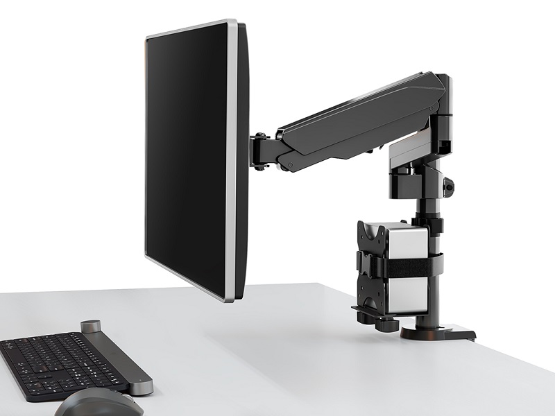 an das Rohr des Desktophalter oder direkt an die