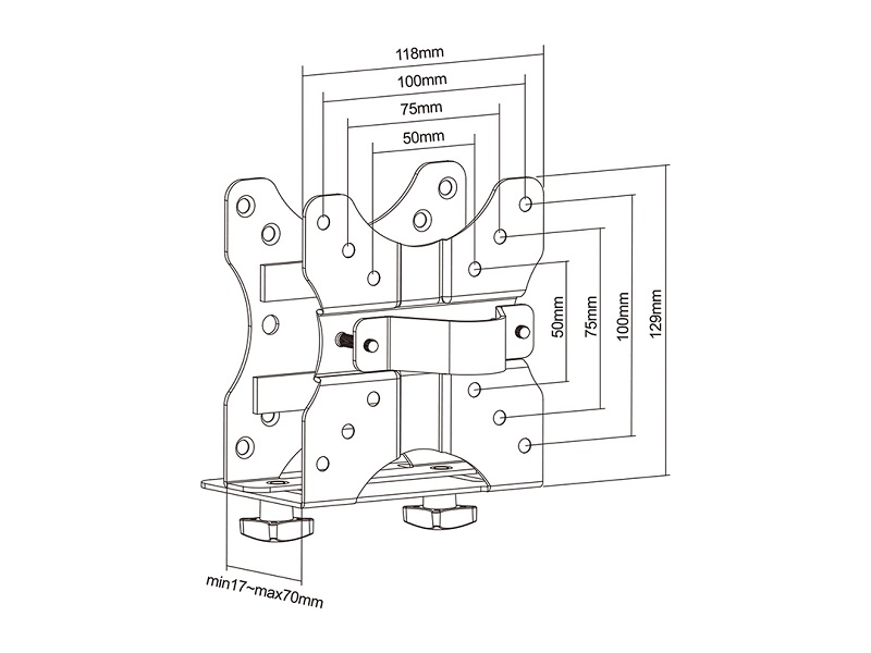 VESA 75x75-100x100, Breite 17-70mm