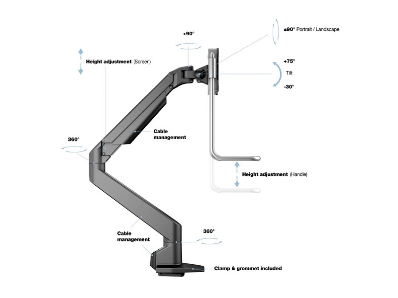 2 Arme, 3 Gelenke, mit Griff für eine genaue