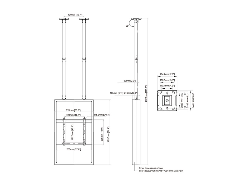 Monitor Rahmen B2B, Deckenmontage, 55"/6825