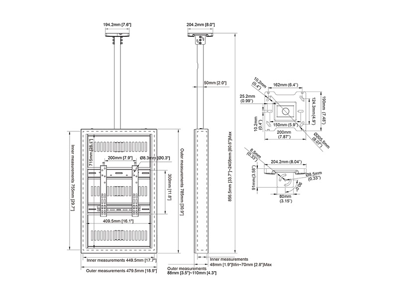 Monitor Rahmen, Deckenmontage, 32"/5018