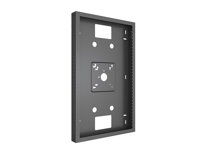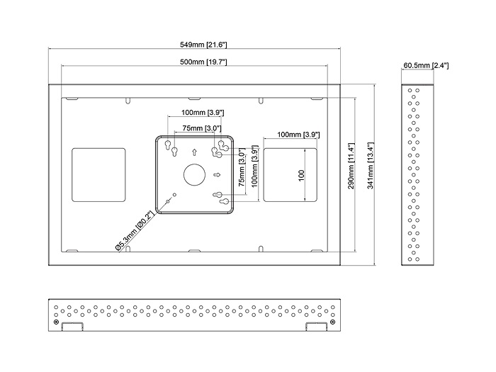 durch Öffnungen im Gehäuse, abschliessbar mit Sicherheitsschrauben, Masse: 590x380x65cm,