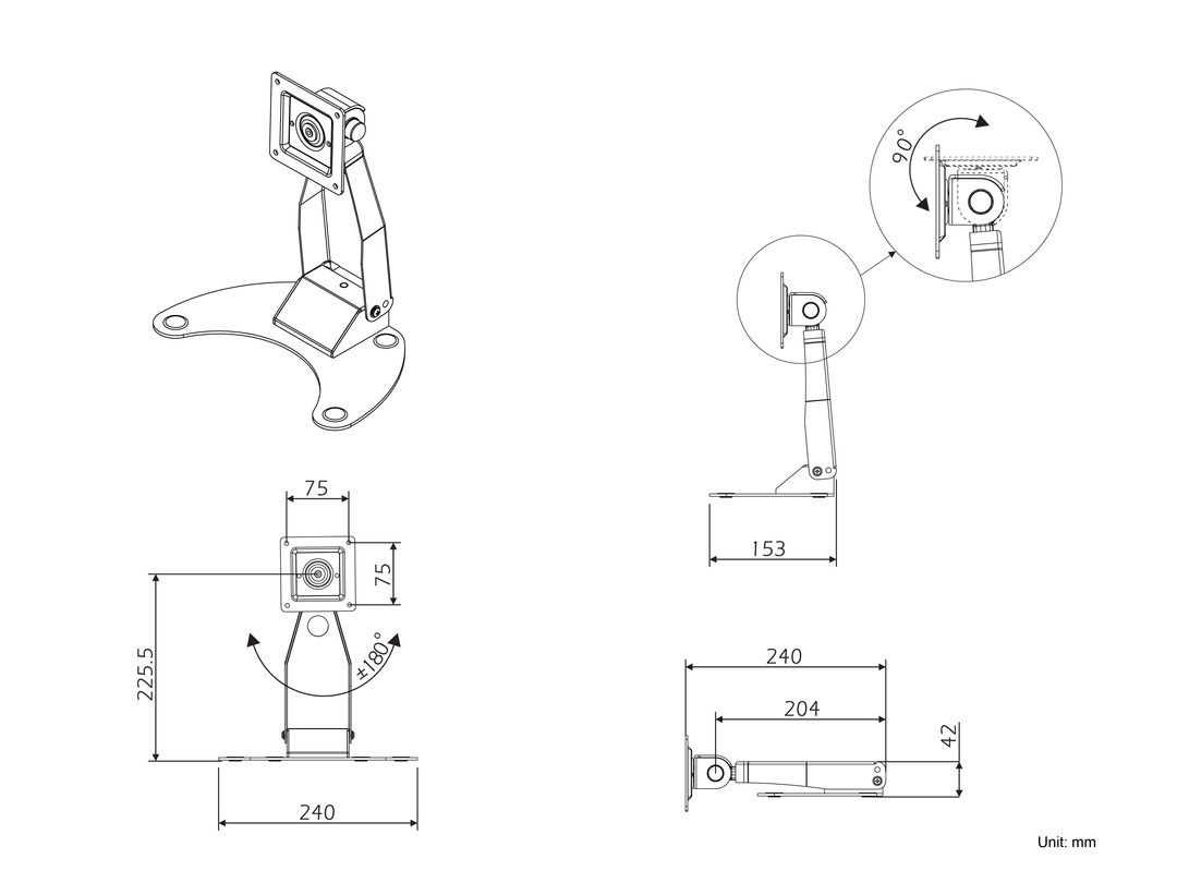 VESA 75x75mm, max.2 kg, 240x153x225 mm