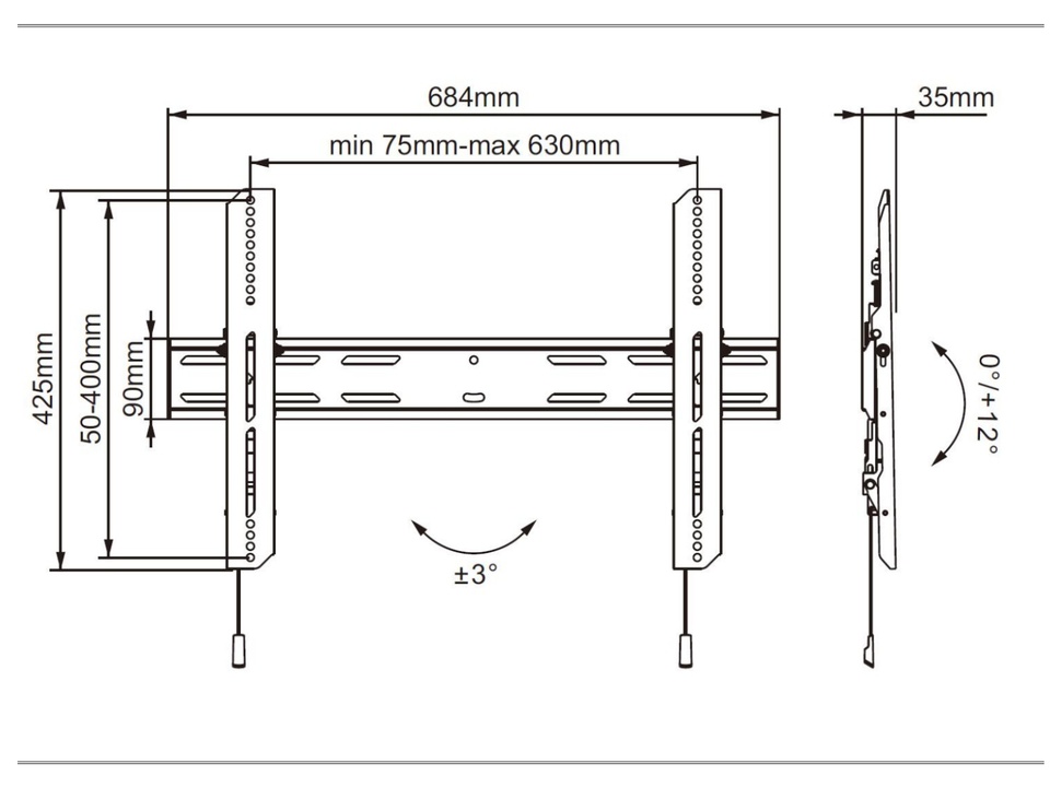 Neigung 12°, Wandabstand 33-75mm, Einrast-