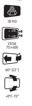 VESA 75x75-400x400, max. 30 kg, 2 Gelenk,