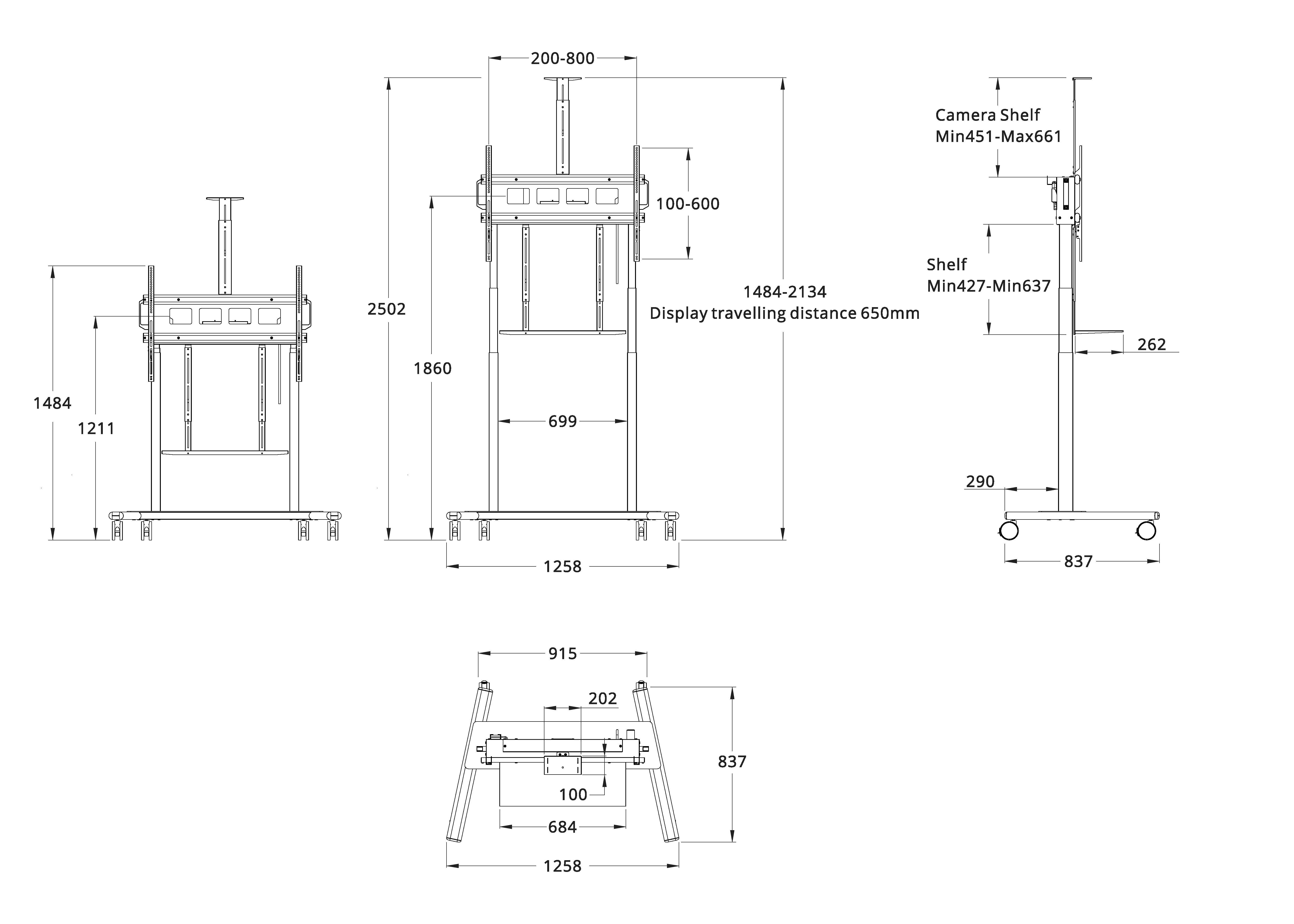 VESA 100x100-1000x400, Hub 650mm