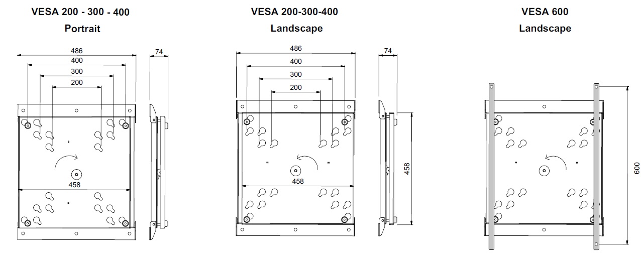 Adapter für 55"+ 65" Flip 2 sowie 90° Halterung