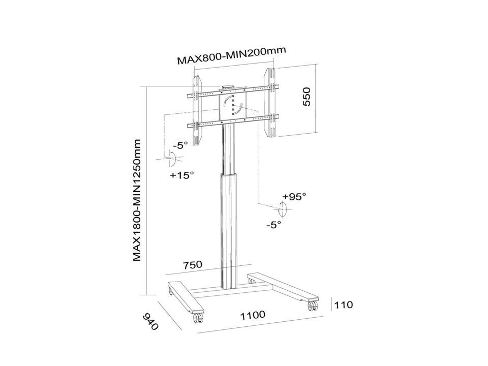 1800 mm, fernbedienbar bis 15m, Masse: 1800x