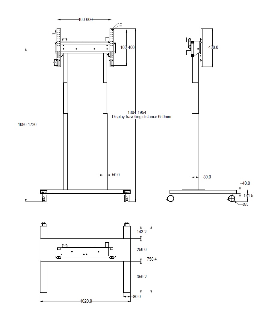 Hubhöhe 500mm, Kabelfernbedienung, Tente-
