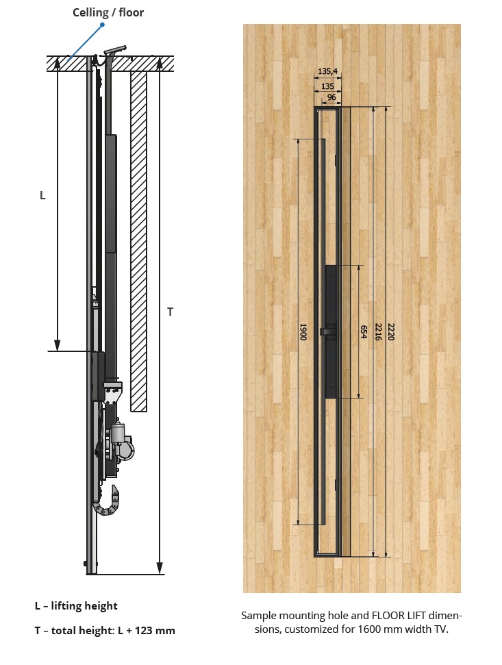 TV Lift Boden-Decke, Metall, max VESA 800x800