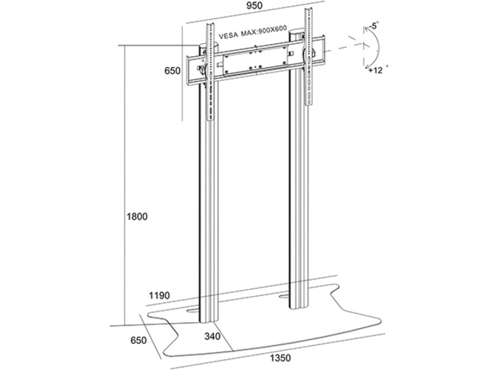 VESA 800x600, max. 125 kg, Höhe 1800 mm
