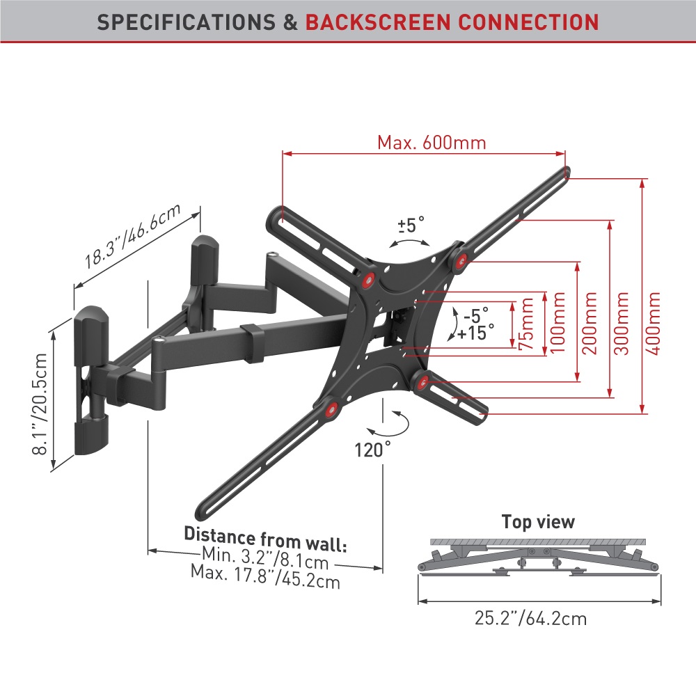 Tragkraft max 60 kg, VESA 75x75-600x400