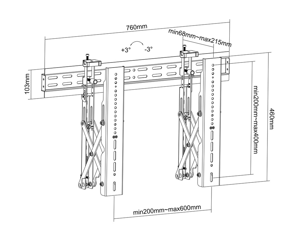 VESA 200x200-600x400, Push, max.40 kg, Metall