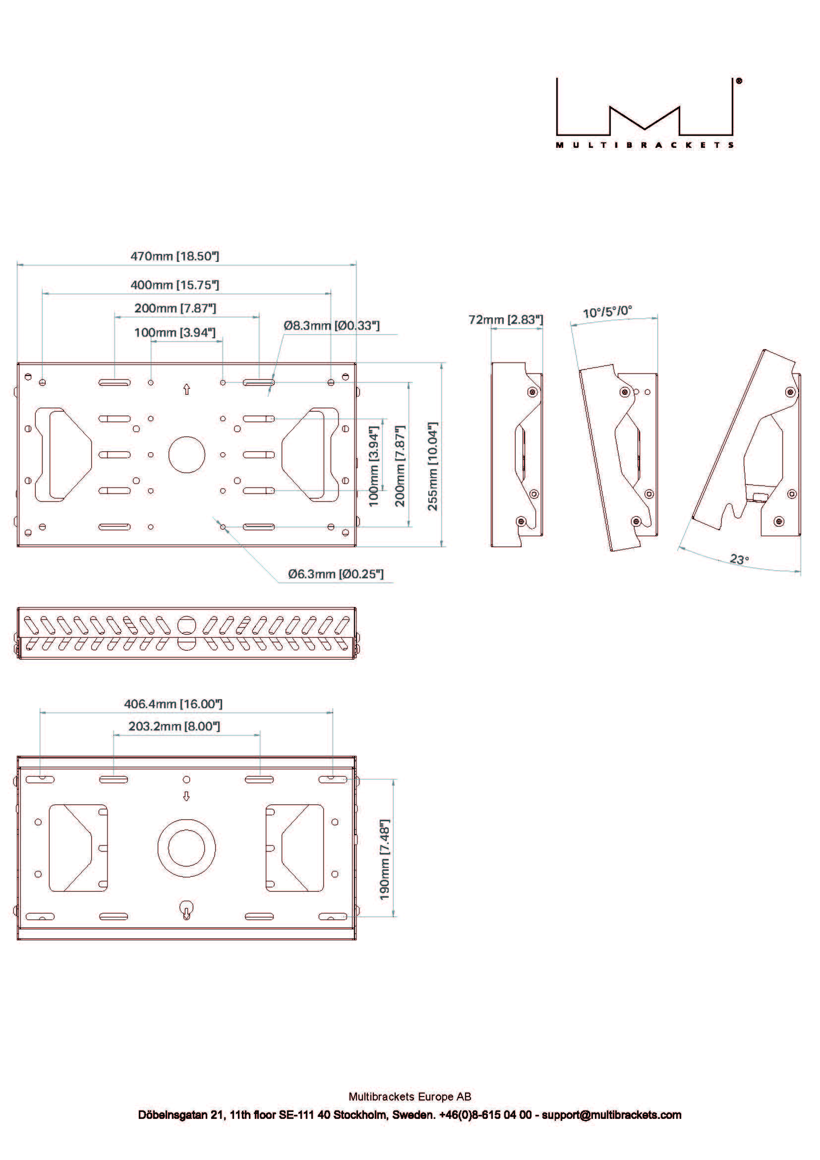 VESA 100x100-400x200mm, Wandabstand 72mm