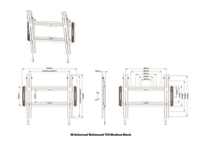 VESA 75x75-800x400mm, neigbar bis +12°
