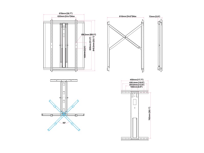 Wandabstand 73mm-610mm, Schwenkbarkeit