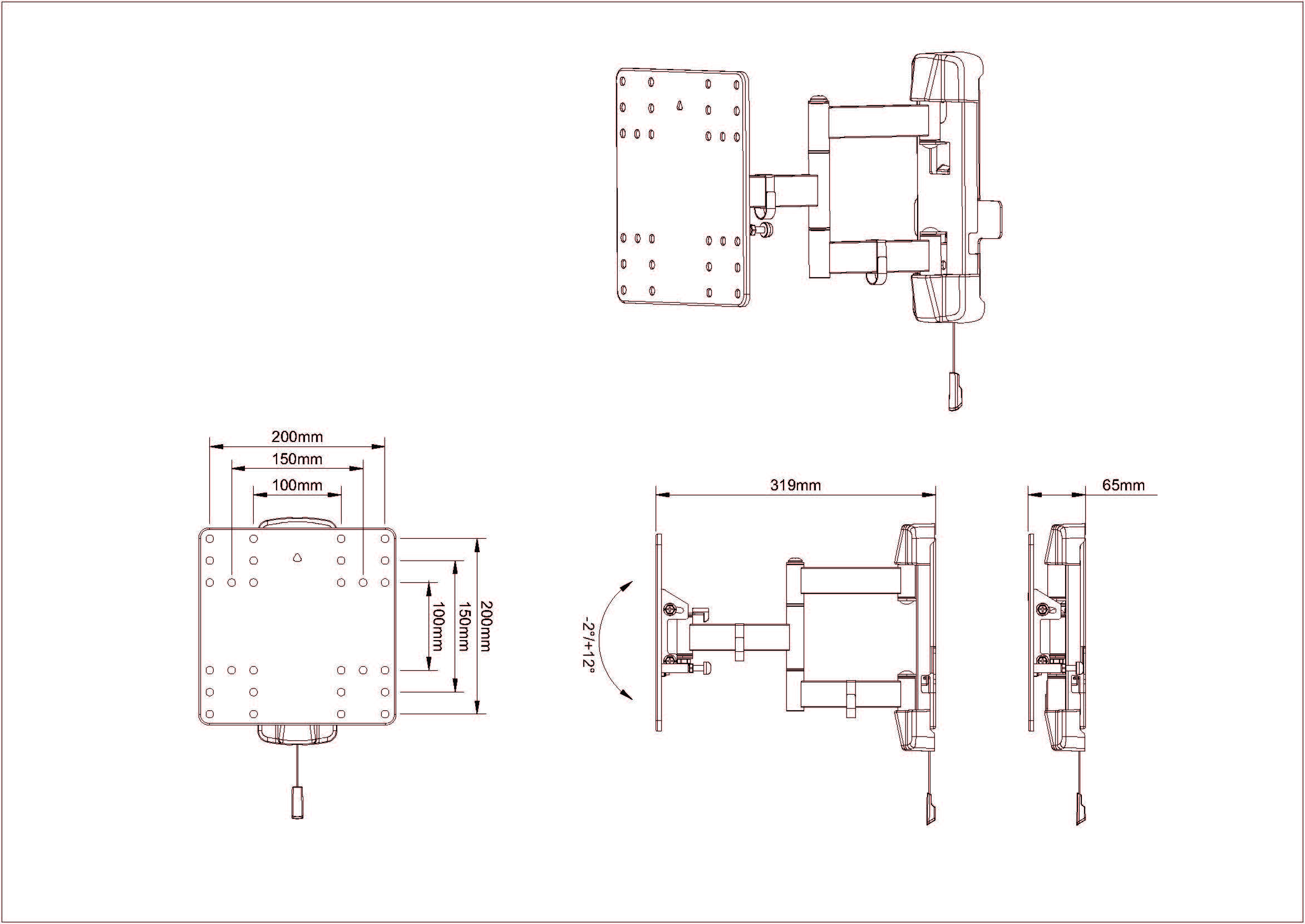 mit 3 Gelenken, Wandabstand 67-322mm, Kabel-
